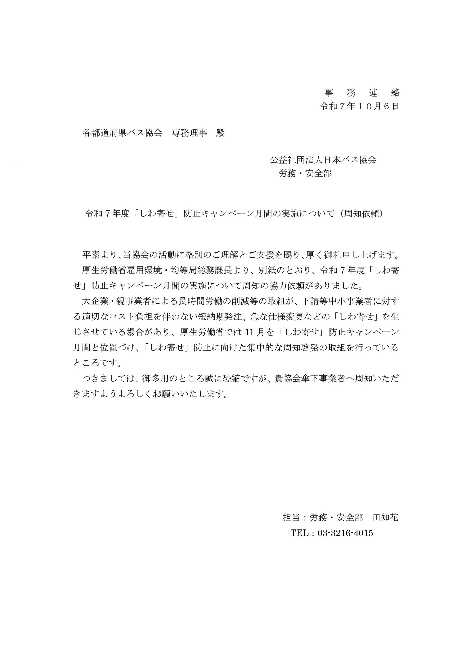 【通知】しわ寄せ防止キャンペーン