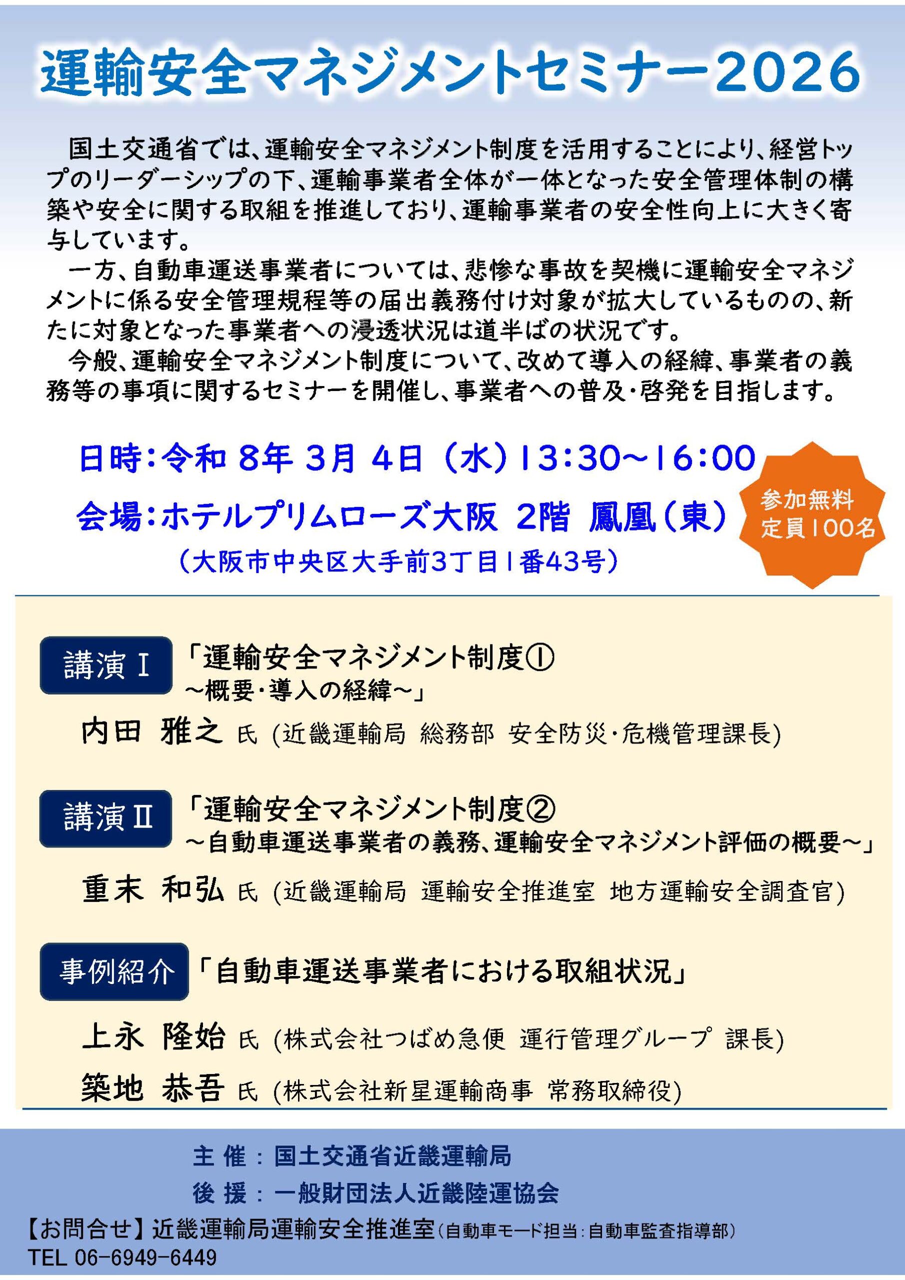 3月4日(水)運輸安全マネジメントセミナー2026の開催について